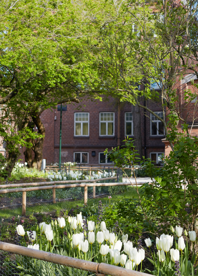 balans mellan oprogrammerade och programmerade ytor. Bevarade traverser möjliggör en unik plats med klimatskydd och vistelse där parken möter kanalkajen.